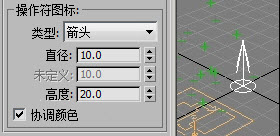 1. 在“粒子视图”中,高亮显示“数据图标”操作符,如果必要,请接着在“数据图标 001”卷展栏 “操作符图标”组中,将“类型”从“矩形”更改为“箭头”。