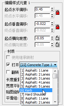 (添加新元素)。 此外,在“材质”子组中,将“宽度平铺”值设置为 0.2,以使新人行道的图案与地面上道路的图案匹配。