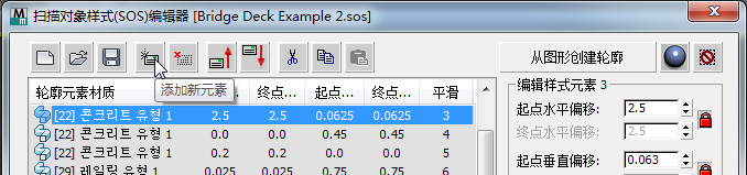 若要构造桥,需要添加新的元素。在添加和细化元素时,还要创建特定的新扫描对象样式 (SOS),您可以保存此样式以在将来的项目中使用。