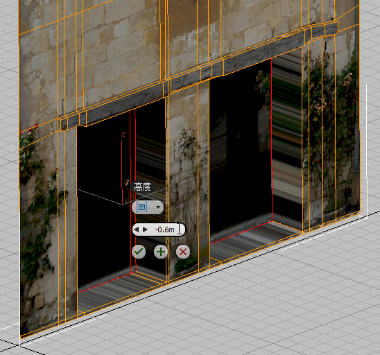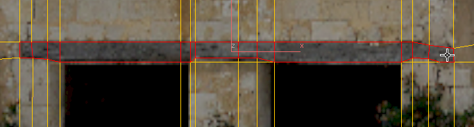 如同您在位图中所看到的一样,门楣的轮廓并不规则。您需要编辑这些面,以使其与木梁的轮廓一致。