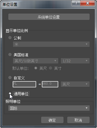 “显示单位比例”组中,确保“通用单位”处于选定状态。