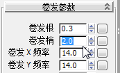 - 在“卷发参数”卷展栏上,将“卷发根”更改为 3.0,将“卷发梢”更改为 2.0。