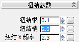 - 在“纽结参数”卷展栏上,将“纽结根”更改为 0.1,将“纽结梢”更改为 2.0。