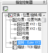 - 在轨迹的“指定控制器”卷展栏列表上,通过单击其“+”图标展开“旋转: 列表”轨迹。