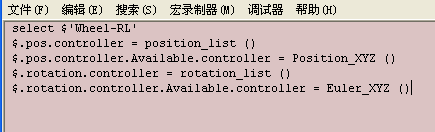 在前面的步骤中,您将位置和旋转列表控制器手动指定到雪佛兰汽车的单个车轮上。 现在您将使用宏录制器将列表控制器自动指定给其余三个车轮以及车身和方向盘,这样整个装备在动画中都将使用相同的坐标系。