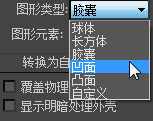 “物理图形”卷展栏上,打开“图形类型”下拉列表并选择“凹面”。