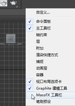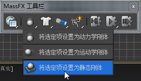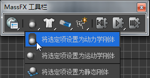 “修改”面板。MassFX 通过将“MassFX 刚体”修改器应用到选定对象来设置对象。