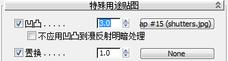 快门会显示良好的细节,但是在带有阴影的渲染中,其波状曲面缺乏深度。可通过添加 shutters.jpg 贴图的凹凸信息来解决此问题。