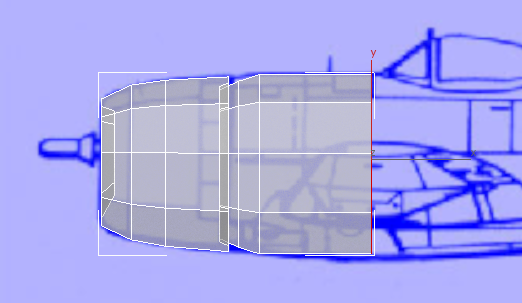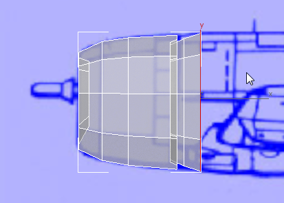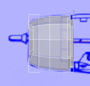 移动中间和下部顶点以便其更好地匹配飞机的轮廓。记住使用区域选择以便可以选择机身两个边上的顶点。