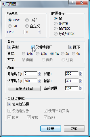 “播放”组中,仅禁用“活动视口”,然后单击“确定”。