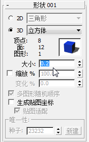 - 在 3ds Max 现在显示的“图形”卷展栏中,将“大小”值更改为 0.2。
