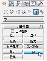 - 在“对象类型”卷展栏上,激活“风”。