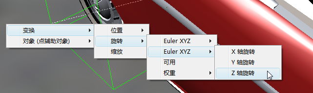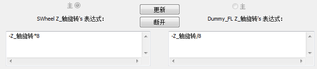 指定的表达式务必要与您在步骤 13 和 14 中使用的表达式完全一样,因为右车轮辅助对象是通过从左前辅助对象复制获得的,而非通过从左前辅助对象镜像获得的。