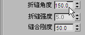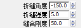 - 在“接缝”卷展栏上,将“折缝角度”值更改为 –150.0。再次将“折缝强度”值更改为 5.0。
