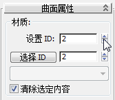 - 下滚至“曲面属性”卷展栏,并将“设置 ID”字段更改为 2。