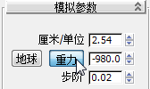 - 在“模拟参数”卷展栏上,单击“重力”以重新启用它。