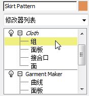 (加号 (+) 图标)展开“布料”层次,再单击“组”子对象层级以将其激活。