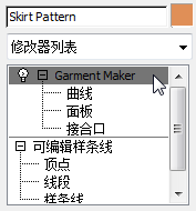 - 从“修改器列表”中,选择“Garment 生成器修改器”。
