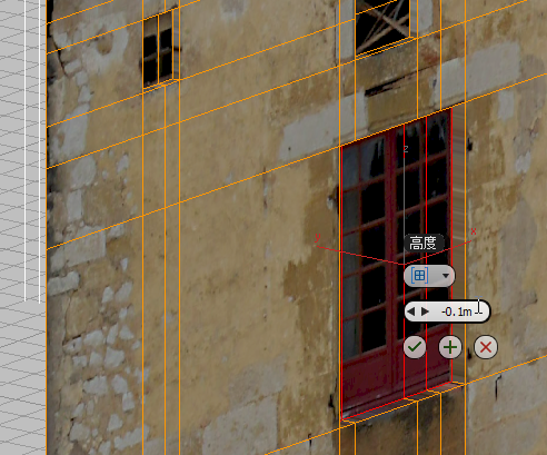 - 拖动“高度”控制旁边的箭头,将窗户挤进大约 –0.05 米。