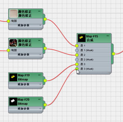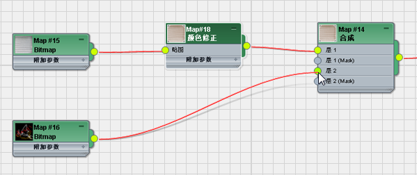 3ds Max 将在“参数编辑器”中显示“颜色修正”控件,并在“位图”和“合成”贴图之间插入一个“颜色修正”贴图节点。