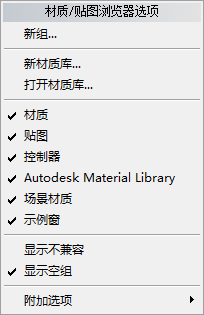 现在,材质库的一部分会显示在“材质/贴图浏览器”中。