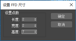 - 在“设置 FFD 尺寸”对话框中,设置下列参数以为用于变形结构的晶格设置控制点数:
