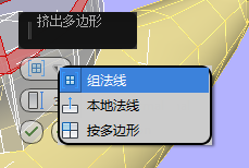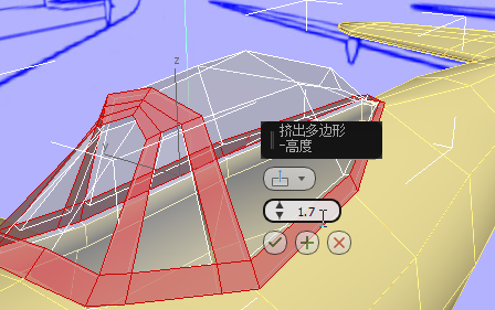 “多边形”面板上,按住 Shift 键并单击 3ds Max 将显示“挤出多边形”Caddy。