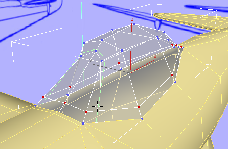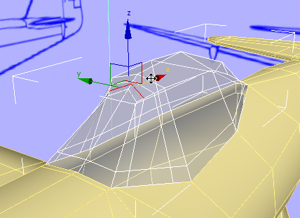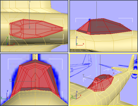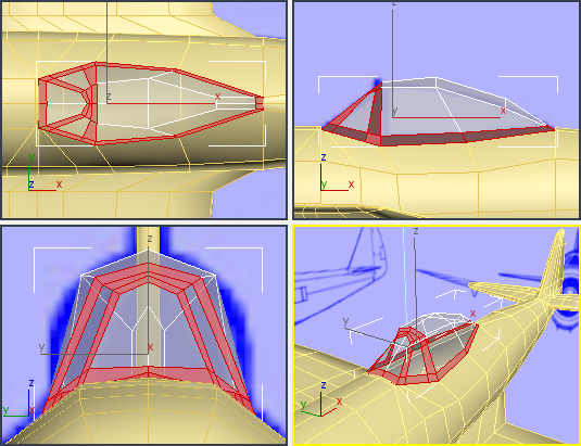 此特定模型中的座舱罩为泡状罩,它是 P-47 的罩选项之一。飞行员坐在玻璃泡内。前风挡的侧面有两个侧风挡,三个风挡由类似于滚动条的金属支杆来支撑。