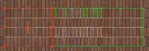 (自由形式模式)仍处于活动状态的情况下,按住 Shift 键的同时,将选择内容的左上角顶点向右拖动一块砖的距离。
