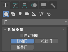“创建”面板中,单击下拉列表上的箭头并选择“门”。在“对象类型”卷展栏上,单击激活“轴”。