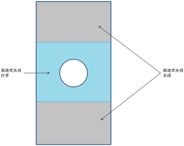 例如,考虑如下所示的空心样本。在这里,需要在远离应力集中的区域中取消激活渐进式失效,这需要两种不同的材料。