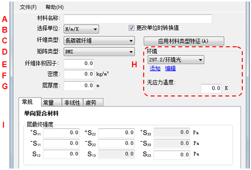 如果正在创建的材料要用于疲劳分析,疲劳数据必须在“疲劳”选项卡中输入。