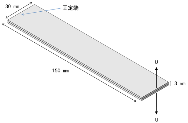 本教程提供了介绍如何创建和分析双层悬臂梁 (DCB) 模型的分步说明,该模型使用 Helius PFA 的粘性单元功能。该问题包含单向(纤维方向平行于样本的长边)复合柱体(一端固定,并由粘性单元的层划分)。以相反方向应用于柱体自由端的同等位移强制脱层萌生于自由端并朝着纯模式 I 断裂的固定端传播。DCB 尺寸和载荷如下所示。