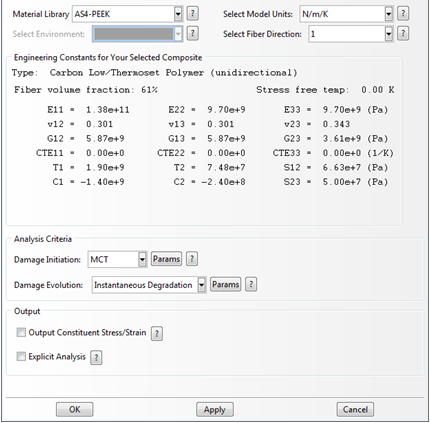 按照以下步骤,将 AS4-PEEK 材料指定给零件 Composite_Plate。