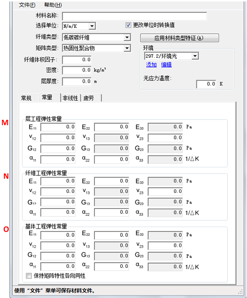 如果您选中“层常量的完整编辑”,则必须指定所以层材料常数。选中此框表示您对所有层材料常数有信心。请注意,使用此功能可能会导致收敛问题,从而增加求解时间。选中此框需要您指定: