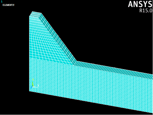 - 再次重复步骤 1 至 3,并使用 NDIV = 1 选择平行于全局 Z 轴的柱体的 4 条直线。