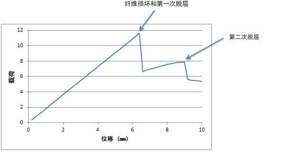 - 由于我们应用了压缩位移,所以将数据输出到电子表格并绘制象限 I 中的结果可能会更有用。借助载荷-位移图,我们可以轻松地标识全局损坏事件并将它们与之前显示的等值线图一一对应。