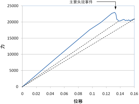 使用载荷-位移图来确定全局失效发生的时间。