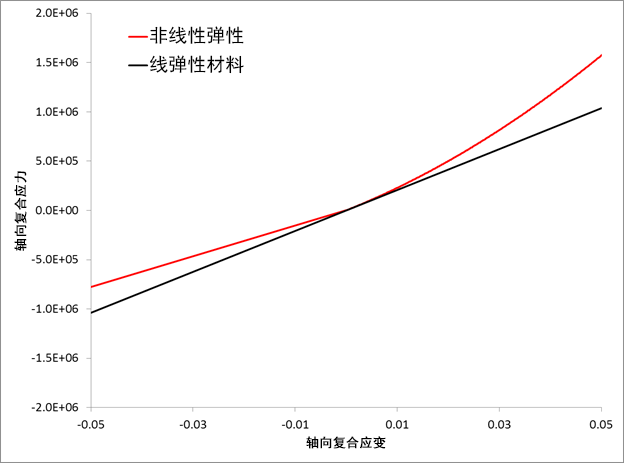 在较大的轴向应变下捕获纤维的非线性行为。