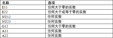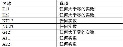 *MATRIX 是 *ENVIRONMENT 的子关键字,是必需项。此关键字提供基体成分的起始弹性常量。