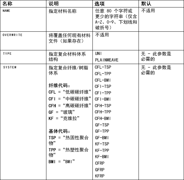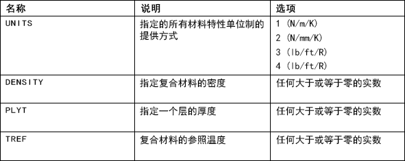 必须至少存在一个 *MATERIAL 关键字。此关键字定义待求解的新材料。