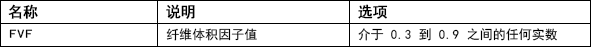 *FVF 是 *MATERIAL 的子关键字,并且必须存在。此关键字提供纤维体积因子信息。对于单向材料,FVF 表示复合材料的总纤维体积因子。对于织物材料,FVF 指定纱线体积因子。