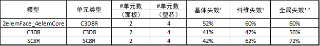 2. 连续壳单元的全局失效发生在较高的载荷级别,即使局部失效发生在较低的载荷级别也是如此。