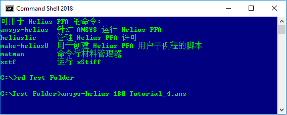 在上述示例中,ansys-helius 调用了使用自定义的 ANSYS 可执行文件提交作业的批处理文件,180 是 ANSYS 的版本(170、171 和 172 是其他有效选项),而 Tutorial_4.ans 是输入文件的名称。