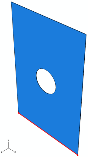 - 从视口中选择板的底部表面作为边界条件的区域,如下所示。确保选择的是底部表面而不是底部表面上的某条边。单击视口中的“完成”按钮。