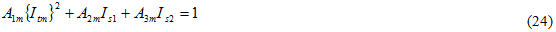 将具有十个系数的准则应用到低于最佳特征化强度的织物复合基体材料的做法不切实际。因此,在织物复合材料中使用的基体失效准则仅包含三个可调整参数,这在使用编织材料的三个已测量弯曲强度时可直接拟合。与单向复合材料一样,将使用不变数量。我们选择不变量 It、Is1 和 Is2,它们分别描述垂直于纤维方向的最大拉伸应力、最大纵向剪切应力以及最大横向剪切应力。我们的准则仅仅是这些不变量的二次组合。
