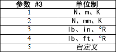 如果第三个参数指定值 1、2、3 或 4,Helius PFA 将自动执行相应的单位换算,并提供上表显示的单位制中的本构关系。但是,如果使用表中没有出现的单位制定义模型法,则必须将第一个参数值设置为 5,表示使用“自定义”单位制。在这种情况下,必须指定将默认单位牛、米和开尔文转换为自定义单位制所需的三种换算因子。这三个用于力、长度和温度的换算因子将列在 HIN 文件中,如前所述(HIN 文件)。