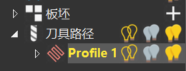 ArtCAM计算刀具路径,并在项目树中的刀具路径 项下添加Profile 1 项:
