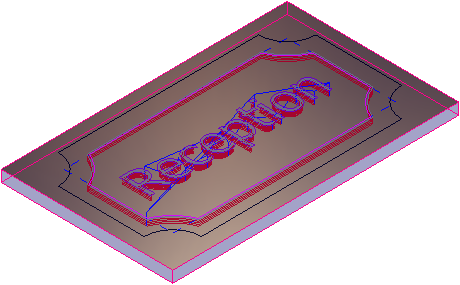 本节介绍如何创建应用于偏移矢量和矢量文本的第一条轮廓刀具路径。 使用5 mm端铣刀刀具的此刀具路径在牌匾边界和Reception文本雕刻少量材料。