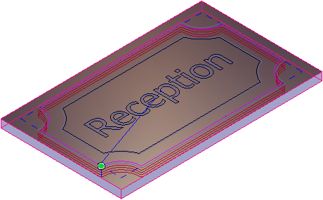 本节介绍如何创建第二条轮廓刀具路径,该路径应用于表示牌匾边缘的矢量。 使用此刀具路径,使用10mm的端铣刀从材料板坯上切下牌匾。